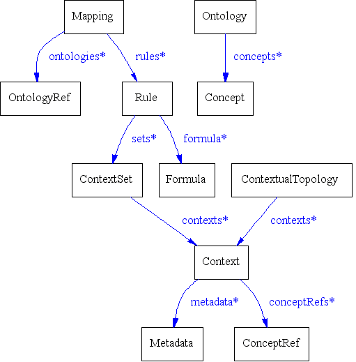 Here's the Semantic Translation ontology in a Protege project zipfile. Here's the OntoViz diagram of the main concepts. Here is also the ontology saved as an RDF schema , and the associated project zipfile.
